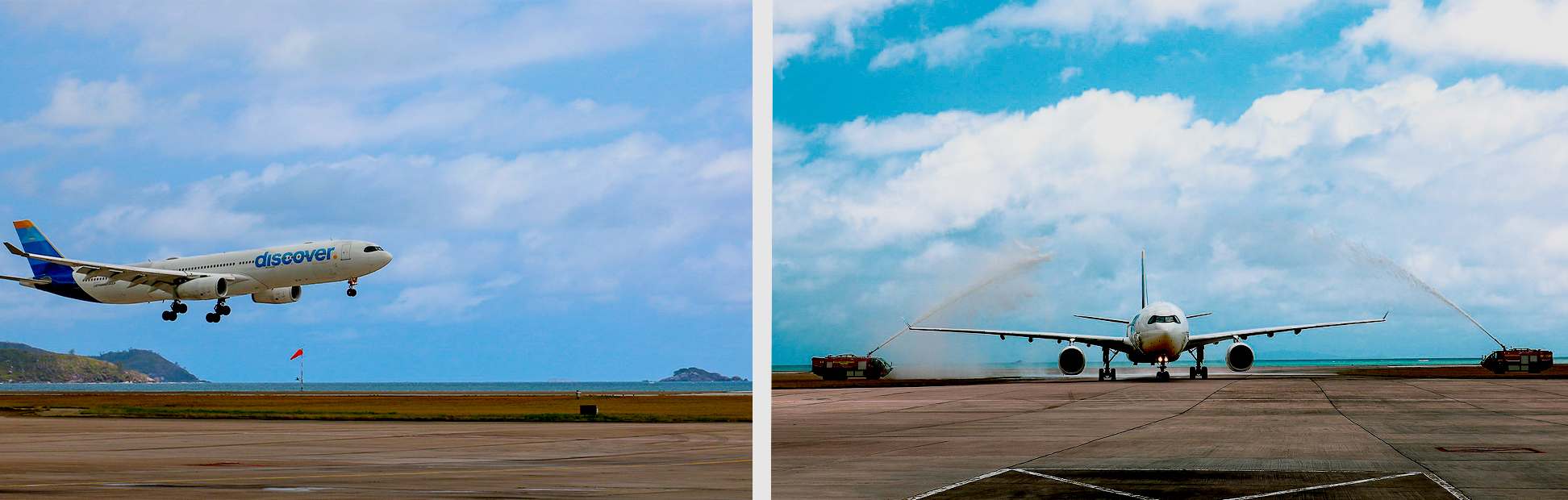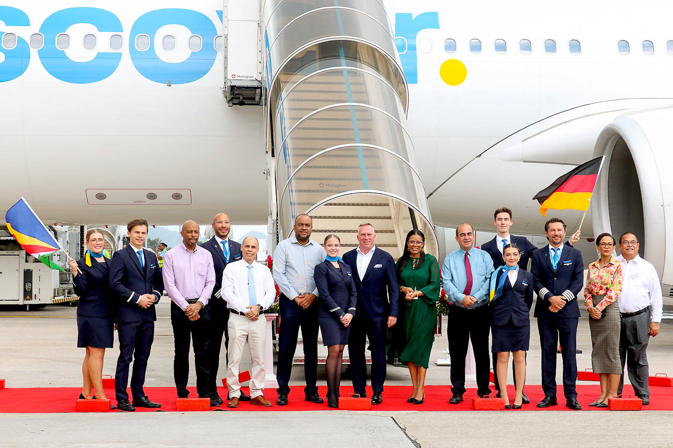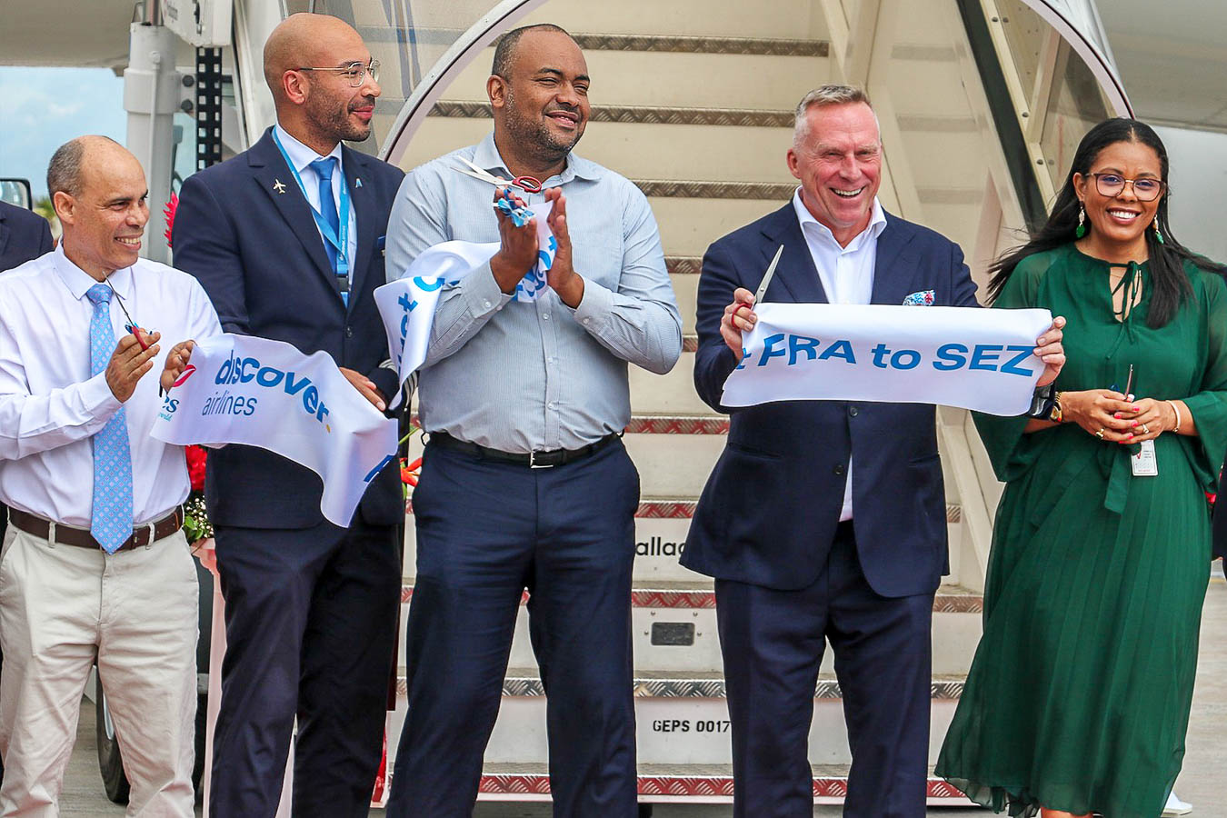 À son arrivée à l’aéroport international de Mahé, sur l'île princiapale de la destination, l’appareil a reçu le traditionnel « Water salute » du service des pompiers, un honneur réservé aux grandes premières dans l’aviation internationale. La présence à bord du PDG de Discover Airlines, M. Bernd Bauer, est venue souligner l’engagement stratégique du groupe Lufthansa envers les Seychelles et l’importance de cette nouvelle liaison pour le développement économique et touristique de la destination.