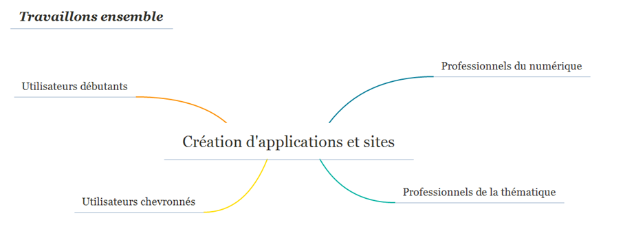 - Donner la possibilité aux utilisateurs de formuler leurs besoins afin que les décideurs et informaticiens adaptent le numérique à leurs demandes. Créer ainsi le partage de compétences de tous les acteurs impliqués dans la transition numérique pour que le numérique ne soit plus imposé à une majorité, mais bien pensé et développé pour répondre à leurs besoins.