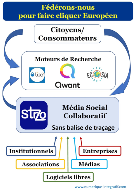 - La réappropriation de l'espace numérique par l'utilisation d'outils européens non toxiques : Il s’agit ici de créer une souveraineté numérique européenne pour contrer la vampirisation américaine ou chinoise.