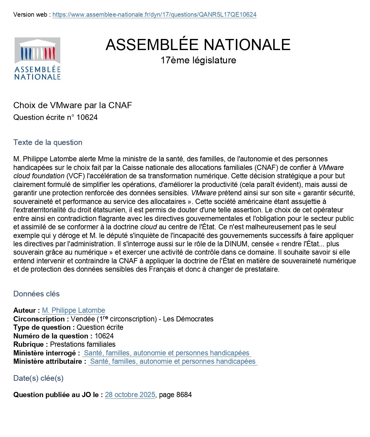 Question écrite n° 10624