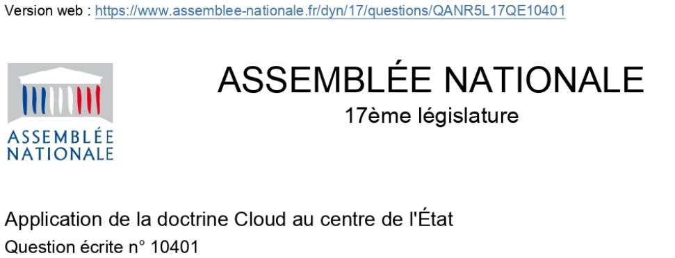 M. Philippe Latombe attire l'attention de Mme la ministre déléguée auprès du ministre de l'économie, des finances et de la souveraineté industrielle, énergétique et numérique, chargée de l'intelligence artificielle et du numérique, sur l'application de la doctrine Cloud au centre de l'État. L'État allemand vient de remplacer Microsoft Exchange et Outlook par une messagerie électronique open source ; la DSB (la CNIL autrichienne) vient d'ordonner à Microsoft d'accorder aux utilisateurs de Microsoft 365 Éducation l'accès à leurs données personnelles ; Polytechnique vient de suspendre son contrat avec Microsoft. Les Européens prennent peu à peu conscience de la nécessité de protéger leurs données numériques des lois extraterritoriales américaines et, à travers elles, leur souveraineté. L'État français peine cependant à imposer à sa propre administration le recours à un fournisseur labellisé SecNumCloud pour l'hébergement de toutes les données sensibles de l'État et des acteurs publics. Face à cela, les grands opérateurs américains profitent de leur suprématie pour user de pratiques commerciales captatrices, pouvant être assimilées à du dumping et retardent ainsi la migration vers des solutions souveraines. Il lui demande comment elle projette d'accompagner ce processus indispensable et si elle envisage de faire appel à la DGCCRF et l'Autorité de la concurrence concernant les pratiques commerciales déloyales des opérateurs américains.