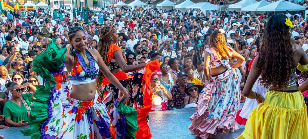 Les danseuses du groupe Racine Séga et celles de l’Association Origin'Kayamb (Réunion) ont apporté une touche authentique aux tableaux chorégraphiques du Fancy Fair. Crédit photo © Joey Nicles Modeste.