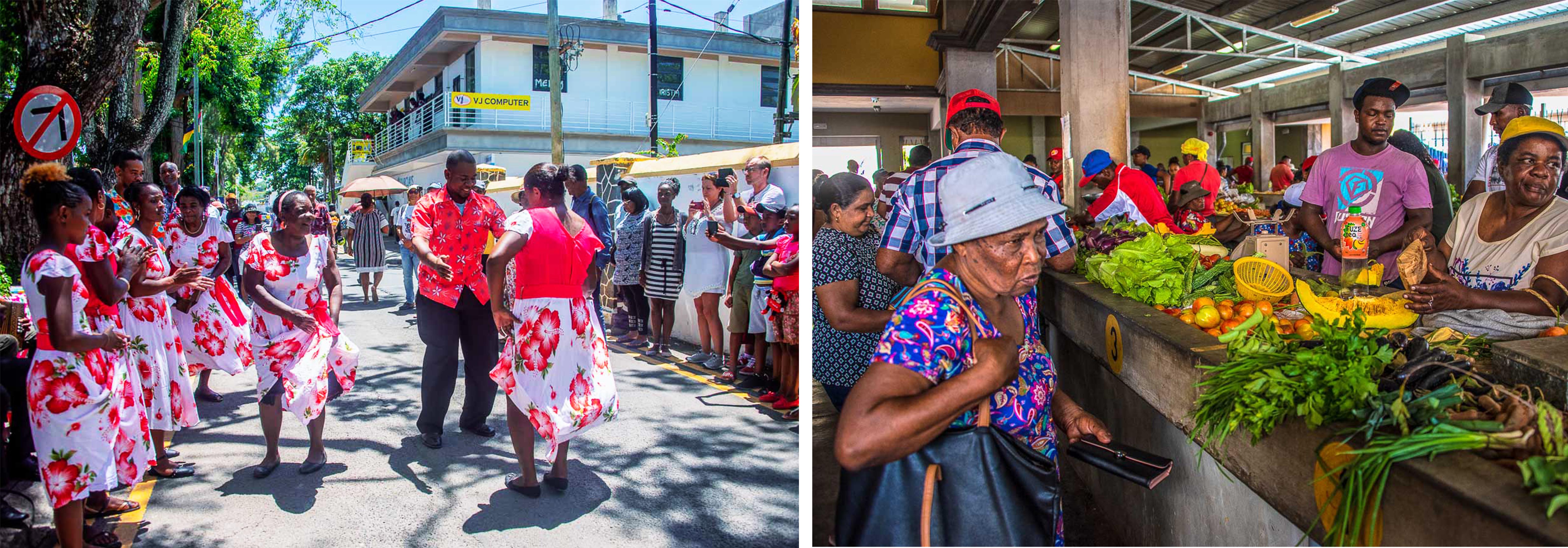 ◾️ L’animation devant le siège de l’Office du Tourisme, rue de la Solidarité, lors du Festival Créole Rodrigues 2022, un moment fort à vivre et le marché de Port-Mathurin, quant à lui, reste une étape incontournable à découvrir lors d’un séjour sur l’île.